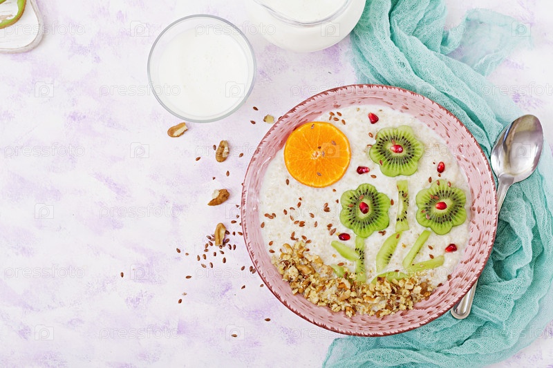 Вкусная и здоровая овсяная каша с киви, гранатом и орехами