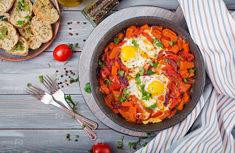 Жареные яйца с кусочками тыквы