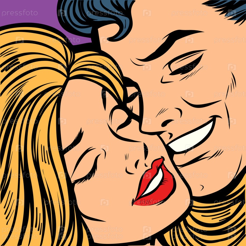 Улыбающийся мужчина и женщина, близкое лицо.Влюбленная пара