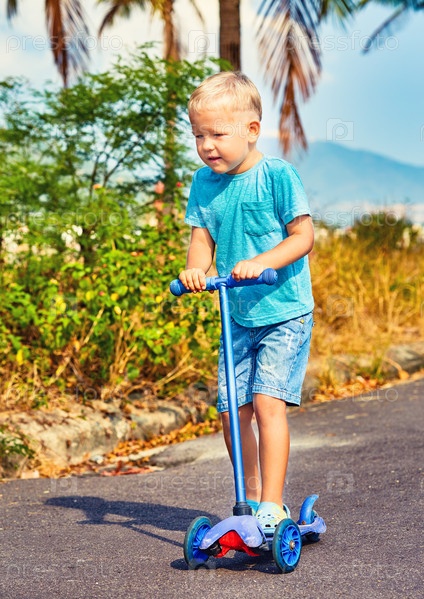 Ребенок едет на самокате