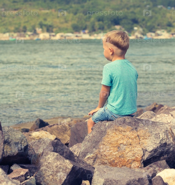 Симпатичный мальчик на берегу моря