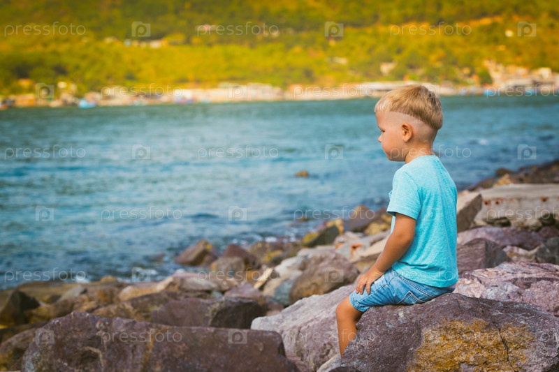 Симпатичный мальчик на берегу моря