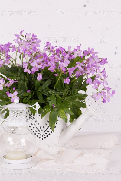 Натюрморт с цветами и керосиновой лампой