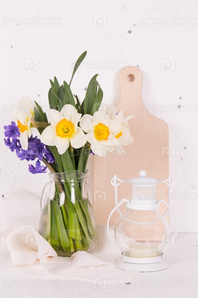 Натюрморт с цветами и керосиновой лампой