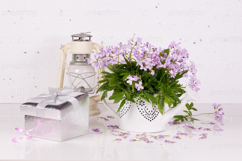 Натюрморт с цветами и керосиновой лампой