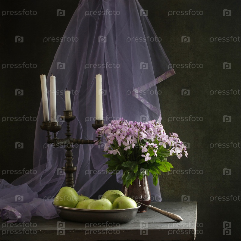 Натюрморт со свечами и яблоками