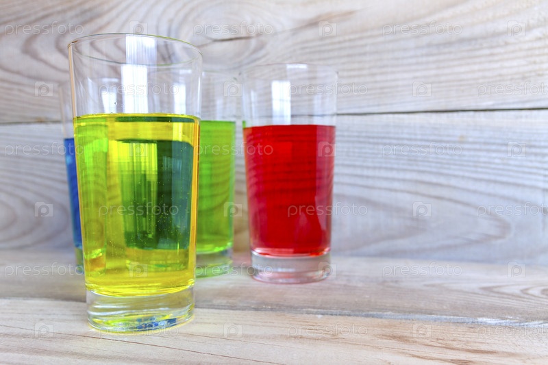 Разноцветный лимонад на деревянном фоне