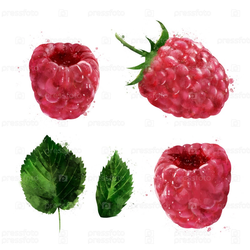 Малина на белом фоне. Акварельный рисунок