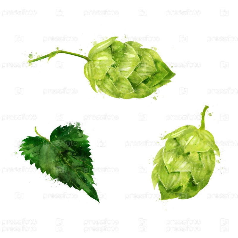 Хмель на белом фоне. Акварельный рисунок