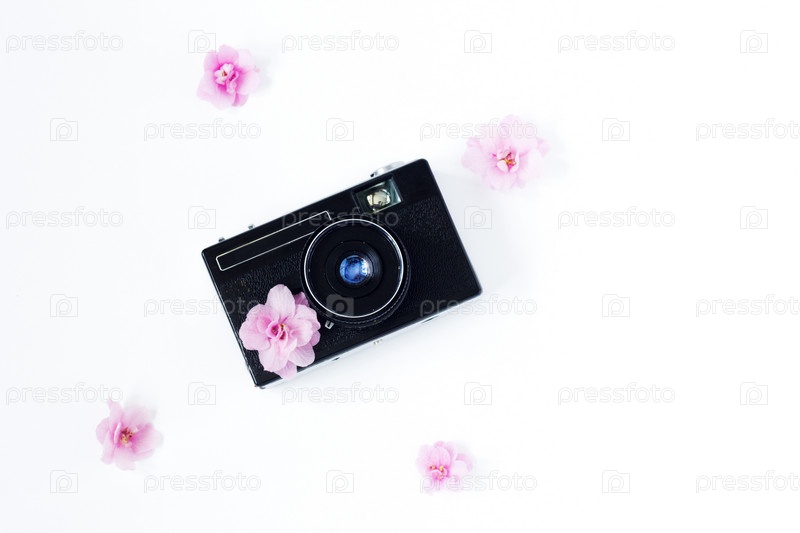 Ретро-камера и цветы