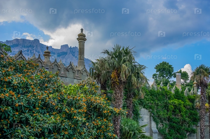 Архитектура Воронцовского дворца с красивой растительностью на фоне голубого неба