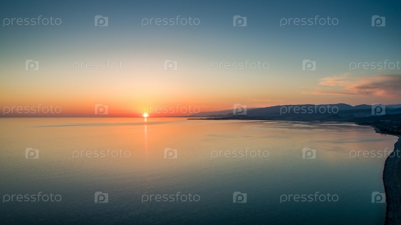Закат над спокойным морем с высоты птичьего полета