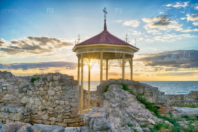 Морской пейзаж с видом на руины древнего города Херсонес