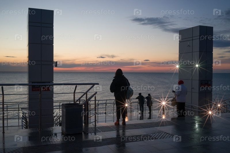 Сочи, Россия. Ночной пейзаж со смотровой площадки станции Адлер