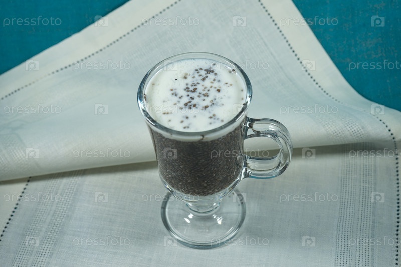 Зерно чиа с молоком в стеклянной кружке