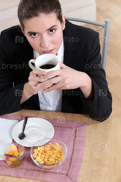 Женщина завтракает