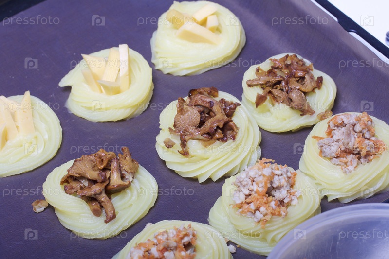 Крокеты из картофеля с начинкой из сыра, грибов и фарша
