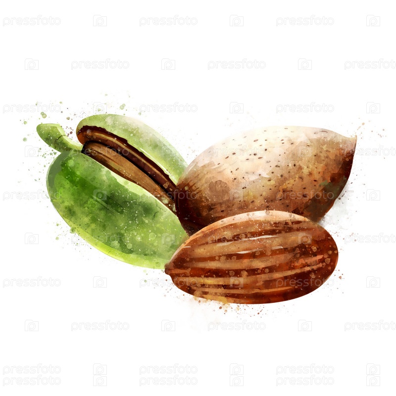 Миндаль на белом фоне. Акварельный рисунок