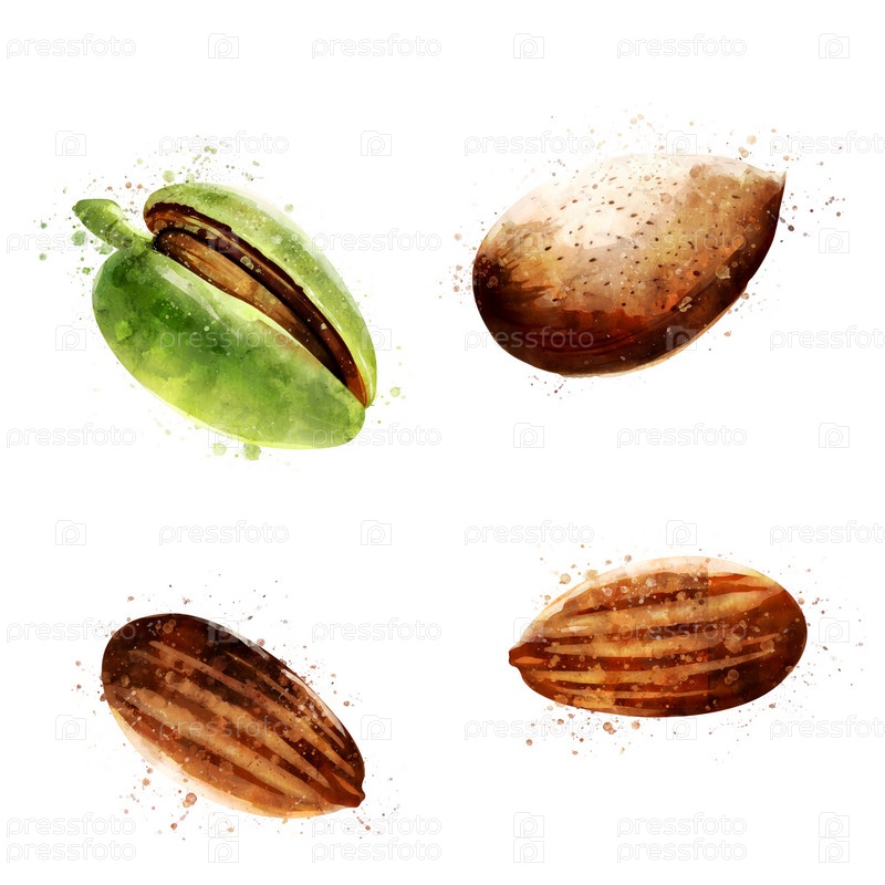 Миндаль на белом фоне. Акварельный рисунок