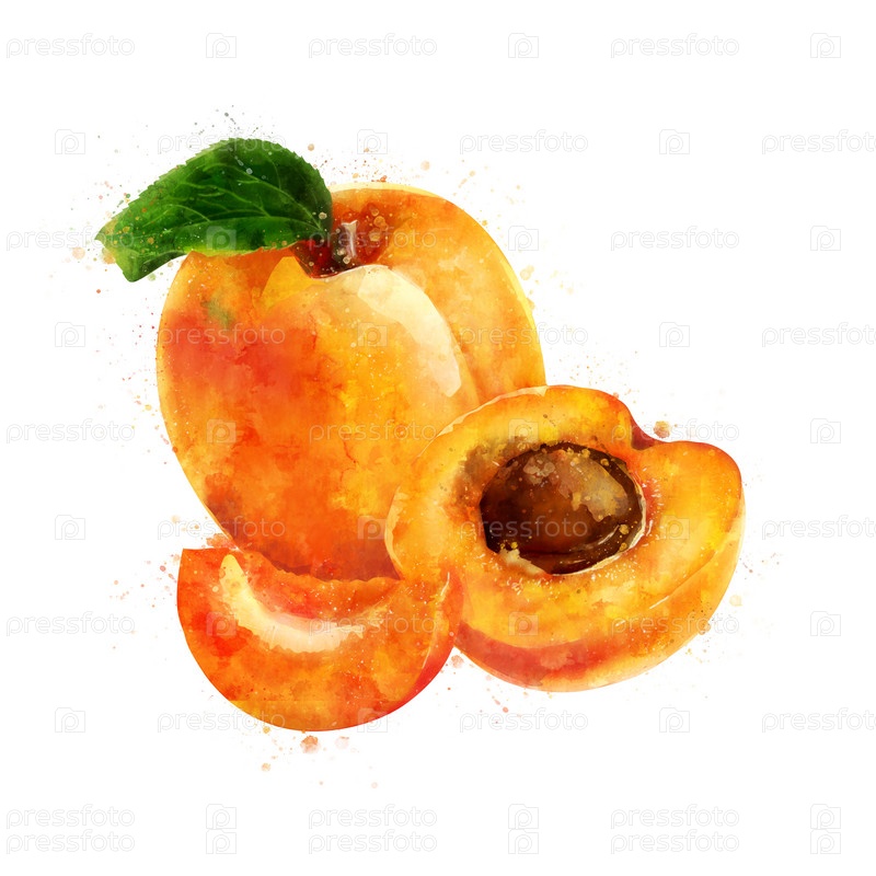 Абрикосы на белом фоне. Акварельный рисунок