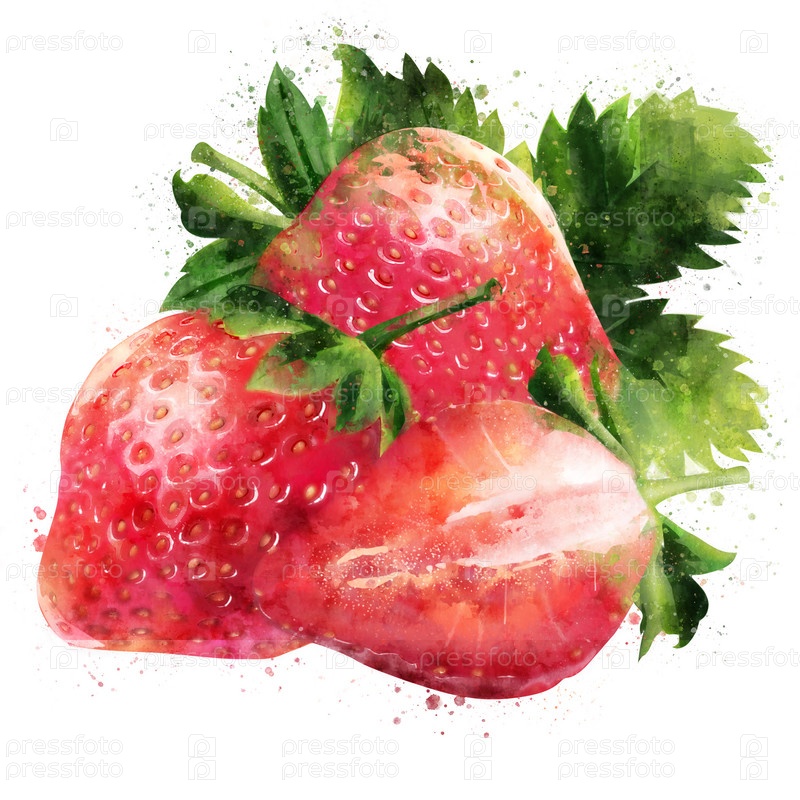 Клубника на белом фоне. Акварельный рисунок