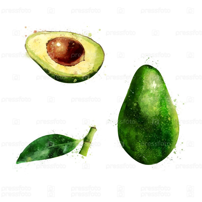 Авокадо на белом фоне. Акварельный рисунок