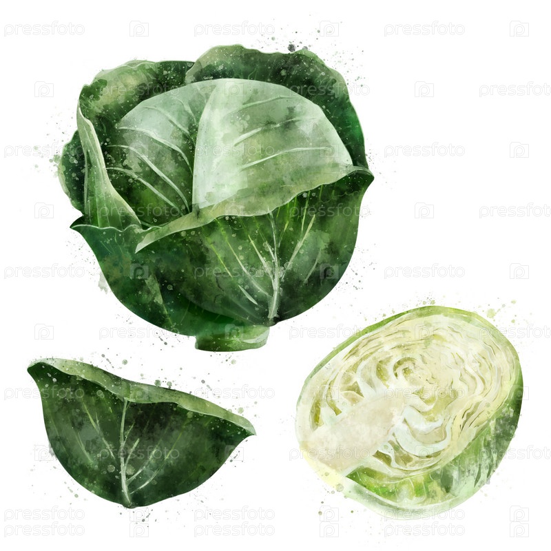 Капуста на белом фоне. Акварельный рисунок