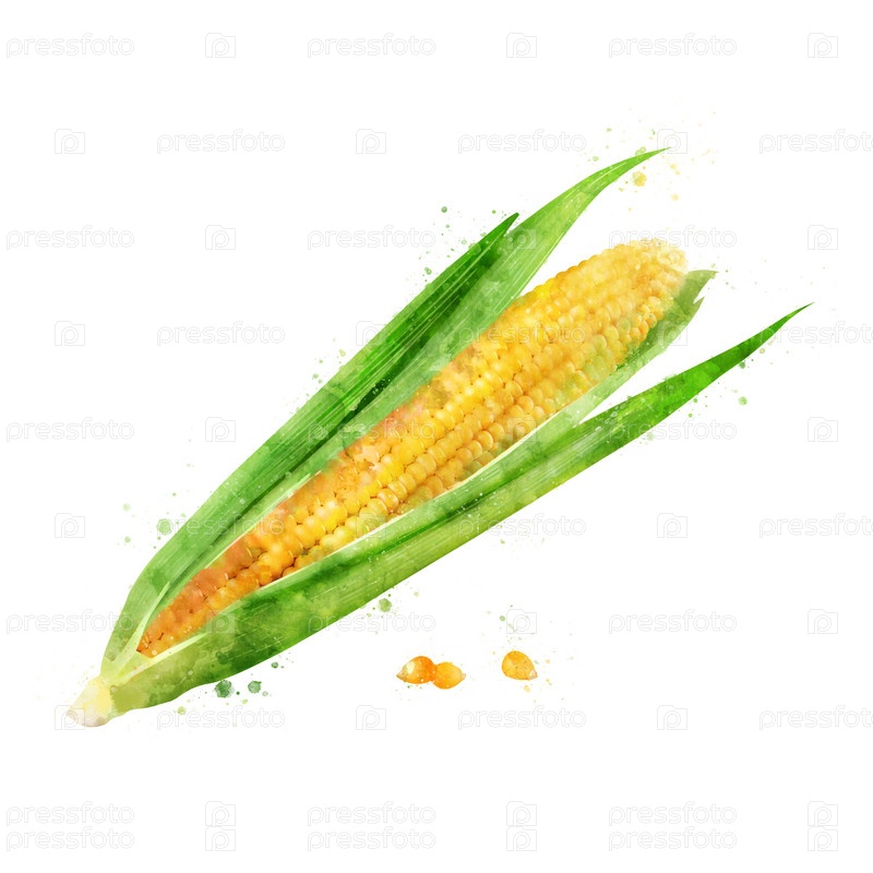Кукуруза на белом фоне. Акварельный рисунок