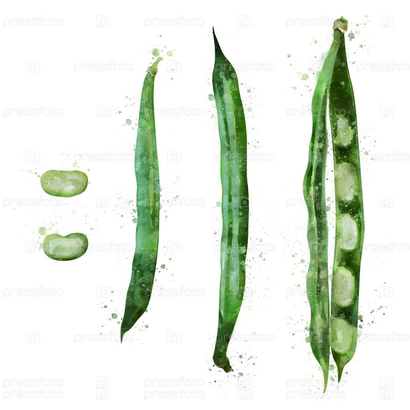 Бобы на белом фоне. Акварельный рисунок