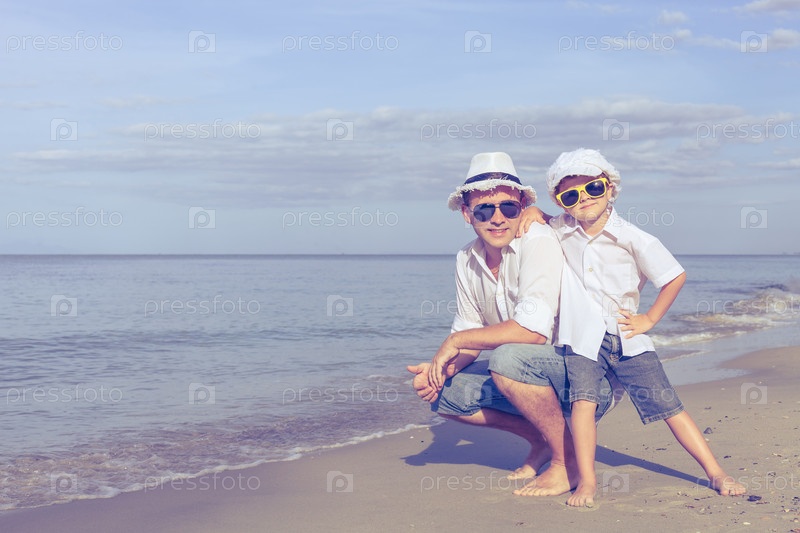 Отец и сын на пляже