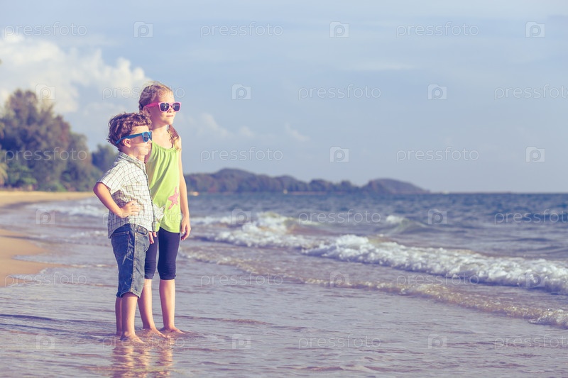 Счастливые дети, играющие на пляже в дневное время