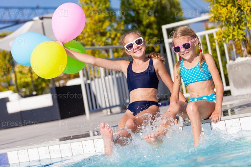 Счастливые дети у бассейна