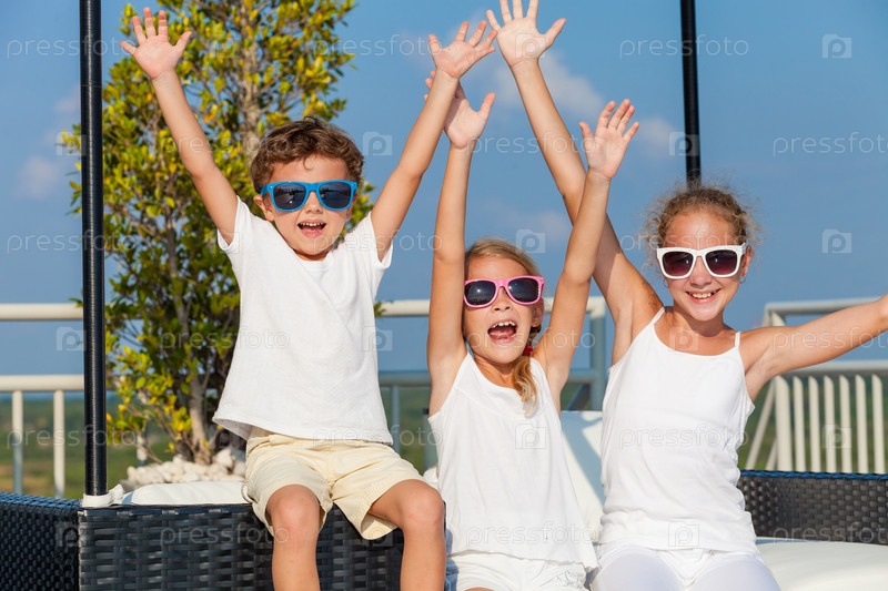 Счастливые дети у бассейна
