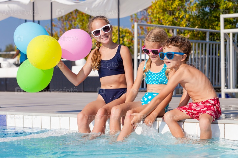 Счастливые дети, играющие в бассейне
