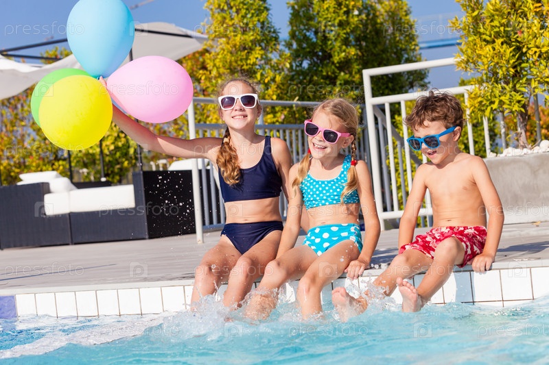 Счастливые дети, играющие в бассейне