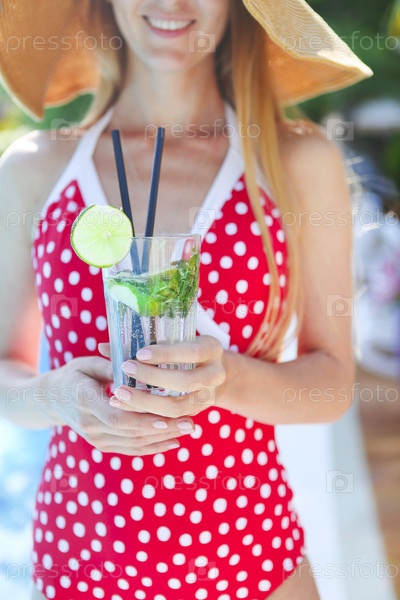 Молодая женщина со стаканом лимонад