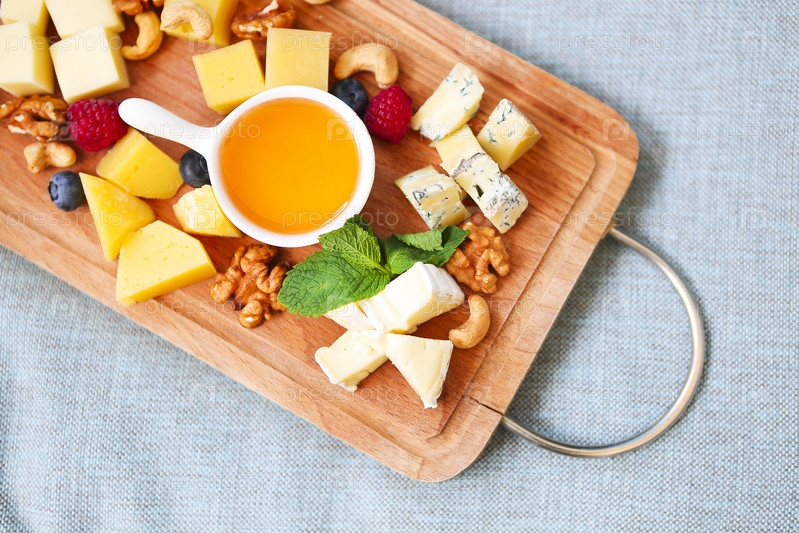 Сыр, мед, ягоды и орехи