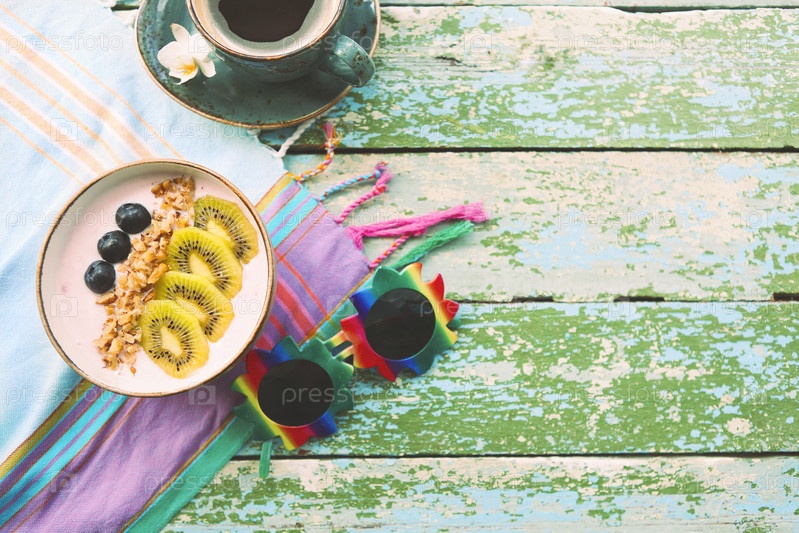 Чашка гранолы с йогуртом и фруктами