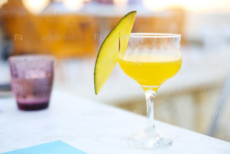 Стакан мангового коктейля на барной стойке