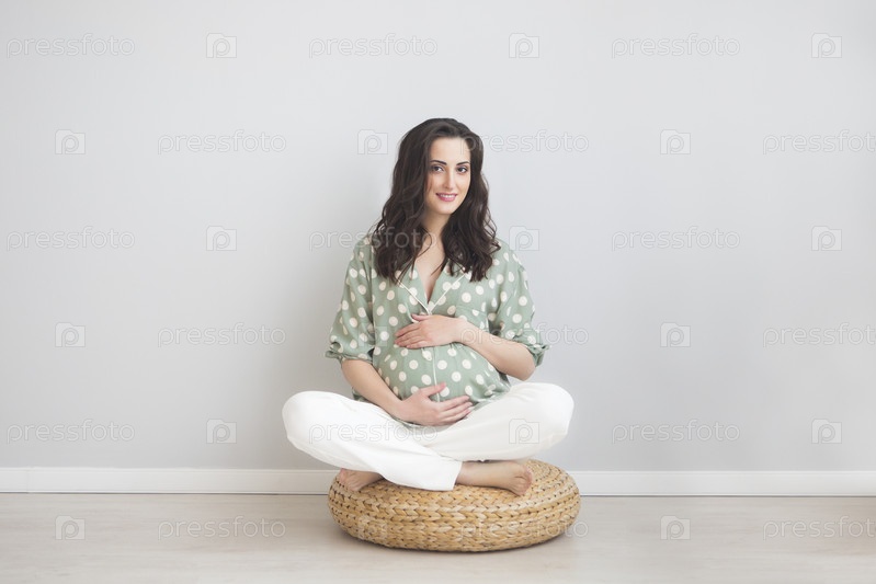 Портрет молодой улыбающейся беременной женщины