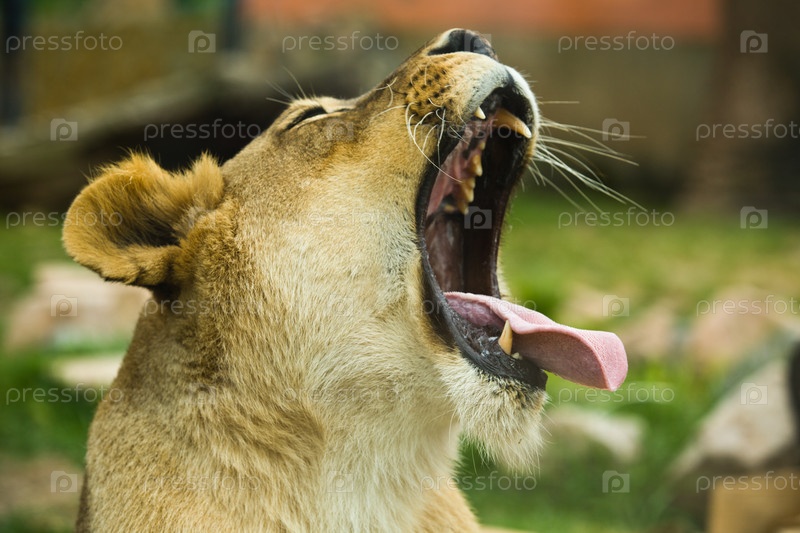 Львица зевает