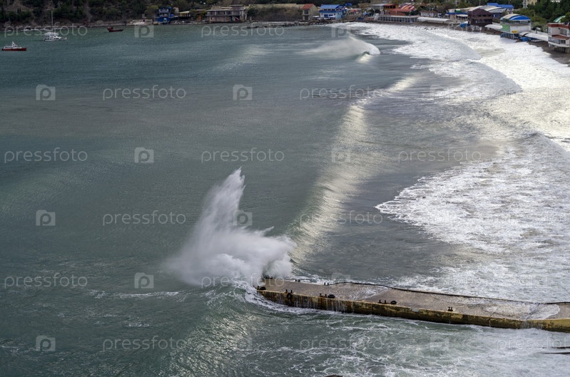 Волна заливает небольшую пристань