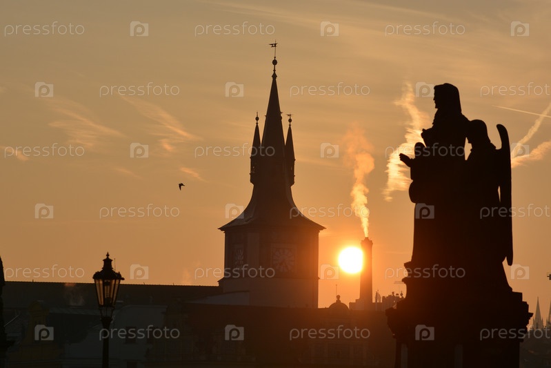 Рассвет на Карловом мосту в Праге