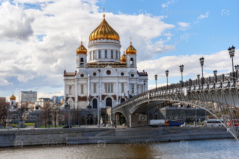 Собор Христа Спасителя и Патриарший мост в Москве. Россия