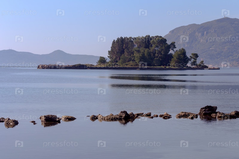 Вид на небольшой островок в море (Греция, остров Корфу)