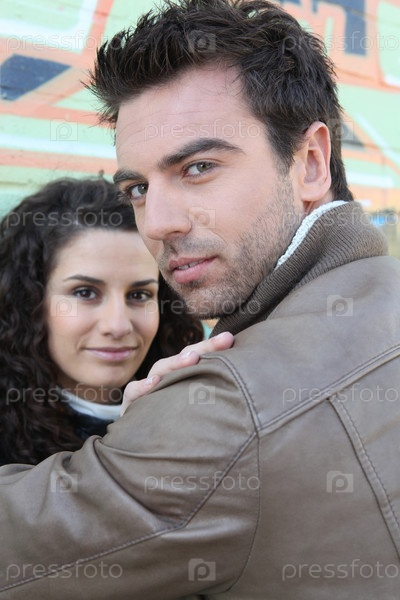 Пара на фоне стены