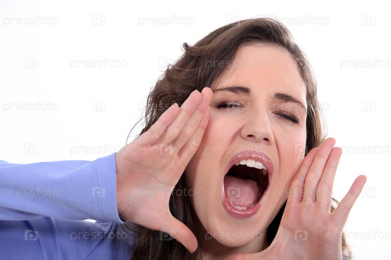 Женщина кричит на белом фоне