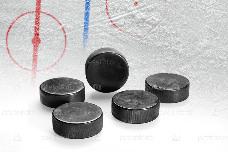Ледовая арена с разметкой и хоккейными шайбами