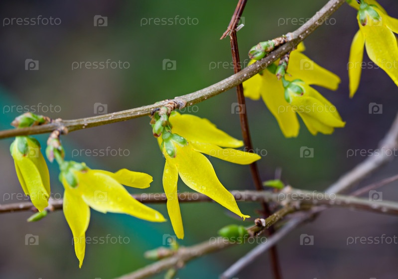 Цветущие ветви форзиции