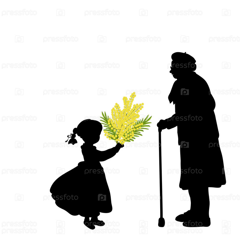 Девочка дает бабушке цветы